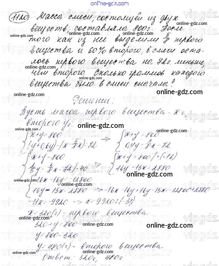 Готовые домашние задания по Алгебре за 7 класс Учебник Мерзляк, Полонский Алгоритм успеха Базовый уровень 2016 - Упражнения 1120