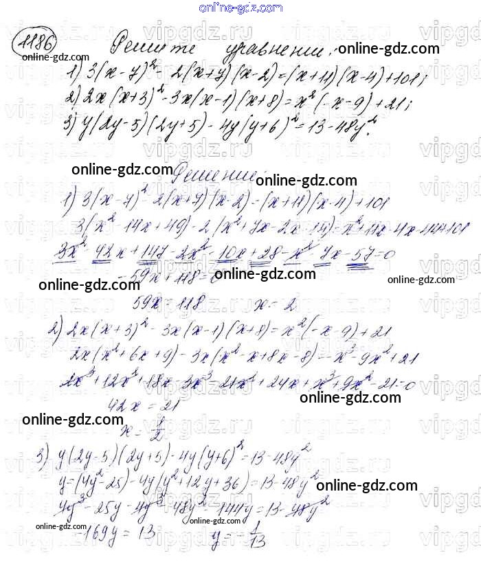 Готовые домашние задания по Алгебре за 7 класс Учебник Мерзляк, Полонский Алгоритм успеха Базовый уровень 2016 - Упражнения 1186
