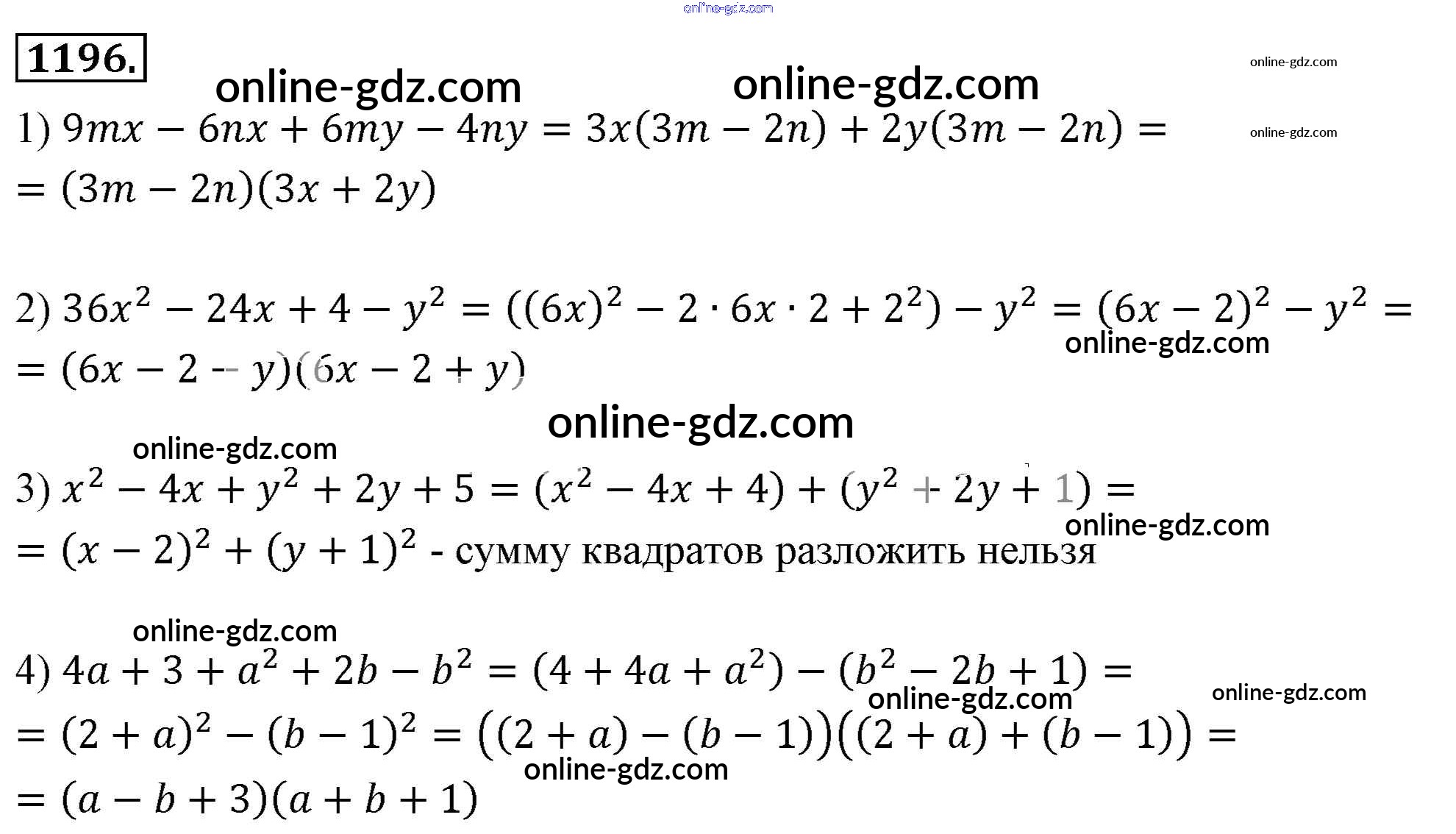 Готовые домашние задания по Алгебре за 7 класс Учебник Мерзляк, Полонский Алгоритм успеха Базовый уровень 2016 - Упражнения 1196
