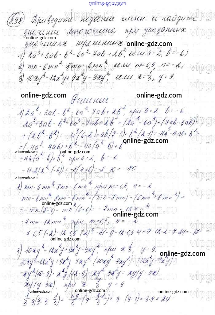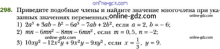 Готовые домашние задания по Алгебре за 7 класс Учебник Мерзляк, Полонский Алгоритм успеха Базовый уровень 2016 - Упражнения 298