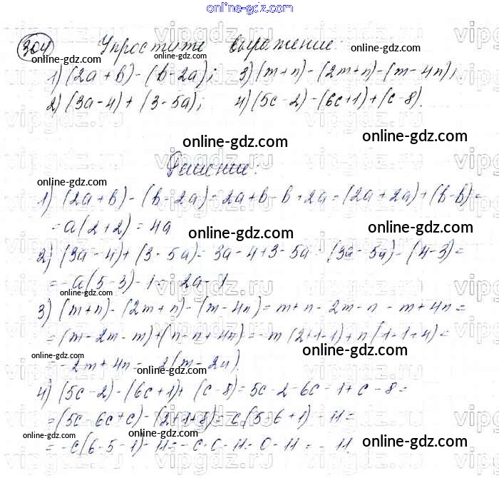 Готовые домашние задания по Алгебре за 7 класс Учебник Мерзляк, Полонский Алгоритм успеха Базовый уровень 2016 - Упражнения 304