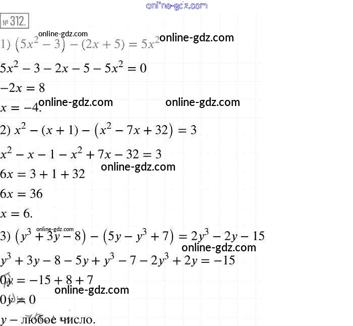 Готовые домашние задания по Алгебре за 7 класс Учебник Мерзляк, Полонский Алгоритм успеха Базовый уровень 2016 - Упражнения 312