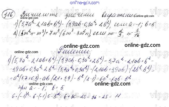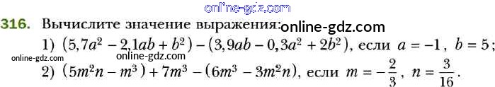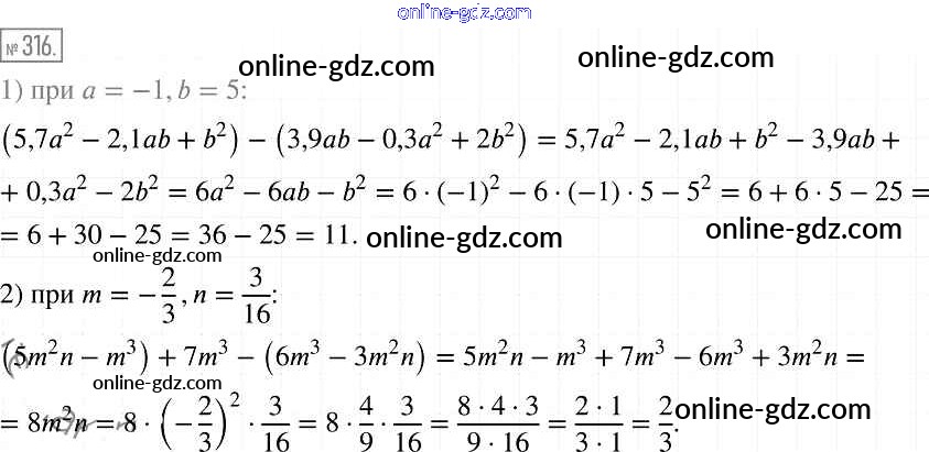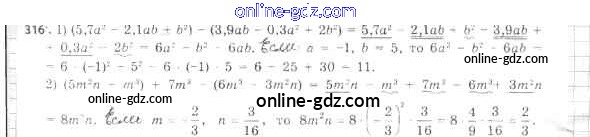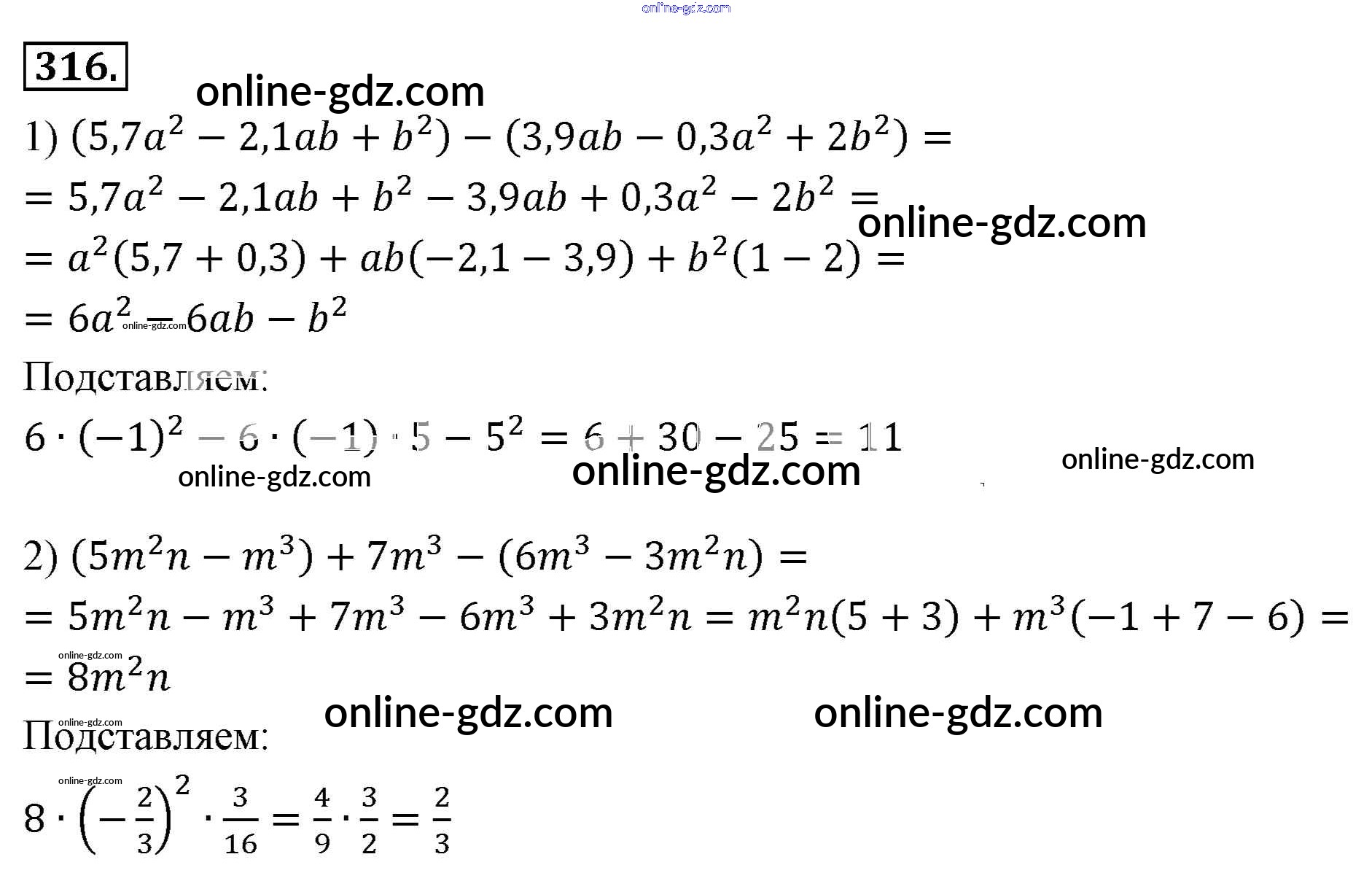 Готовые домашние задания по Алгебре за 7 класс Учебник Мерзляк, Полонский Алгоритм успеха Базовый уровень 2016 - Упражнения 316