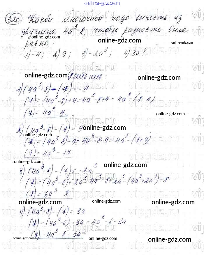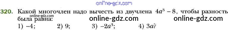 Готовые домашние задания по Алгебре за 7 класс Учебник Мерзляк, Полонский Алгоритм успеха Базовый уровень 2016 - Упражнения 320