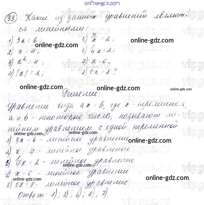 Готовые домашние задания по Алгебре за 7 класс Учебник Мерзляк, Полонский Алгоритм успеха Базовый уровень 2016 - Упражнения 33