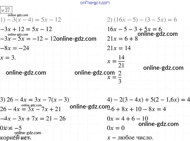 Готовые домашние задания по Алгебре за 7 класс Учебник Мерзляк, Полонский Алгоритм успеха Базовый уровень 2016 - Упражнения 37