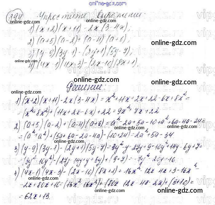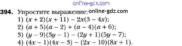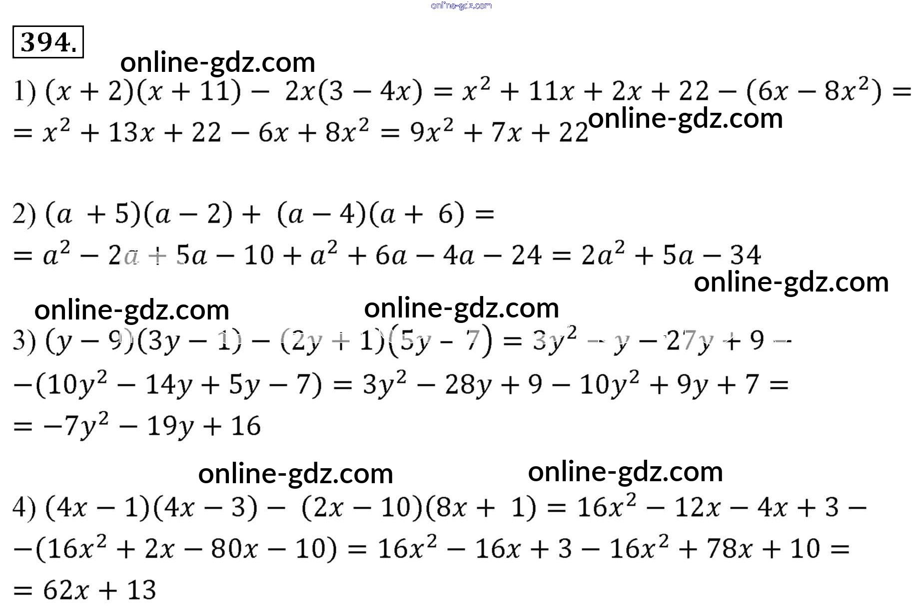 Готовые домашние задания по Алгебре за 7 класс Учебник Мерзляк, Полонский Алгоритм успеха Базовый уровень 2016 - Упражнения 394