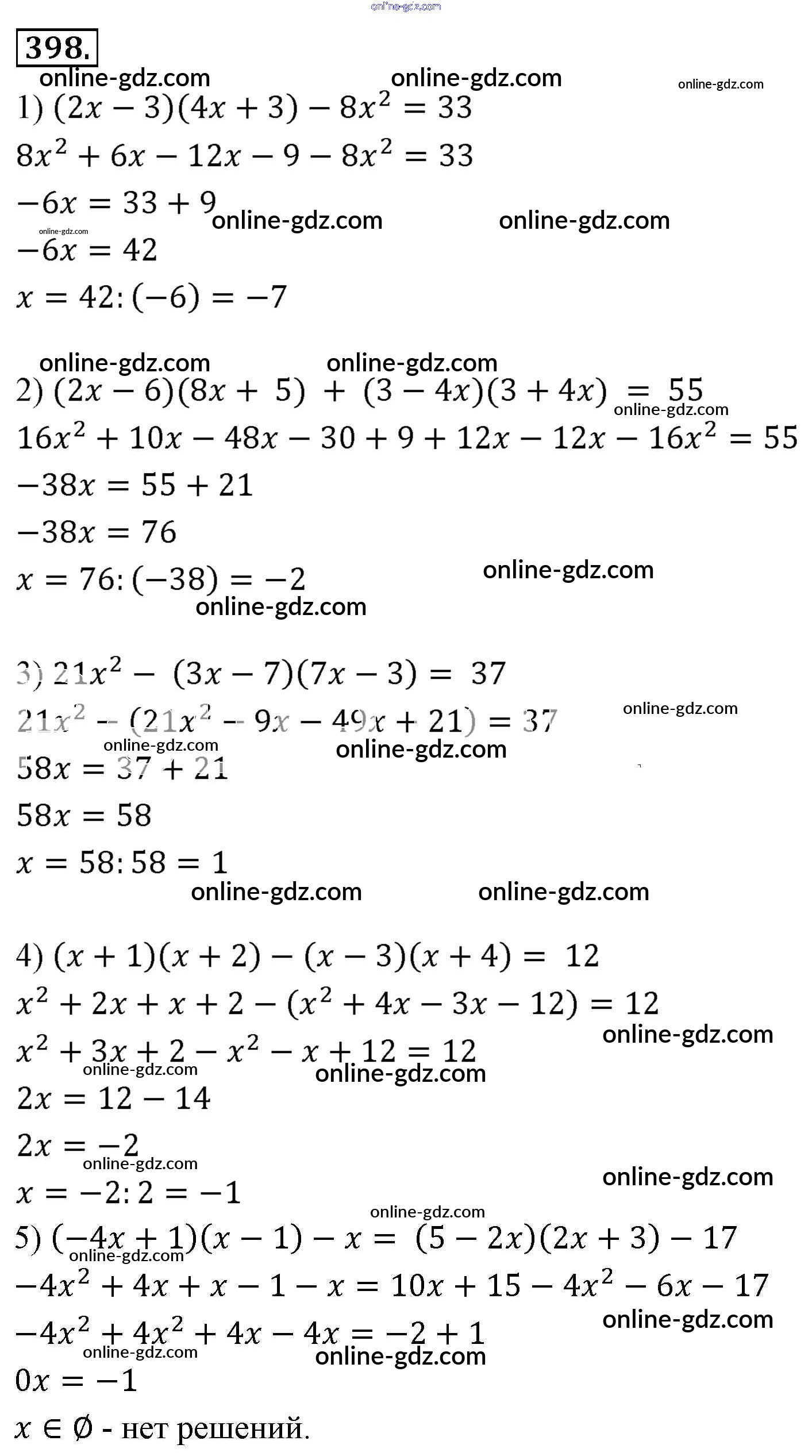 Готовые домашние задания по Алгебре за 7 класс Учебник Мерзляк, Полонский Алгоритм успеха Базовый уровень 2016 - Упражнения 398