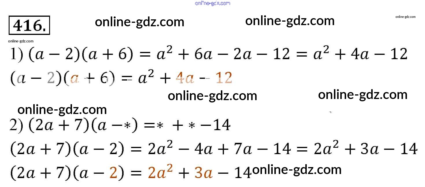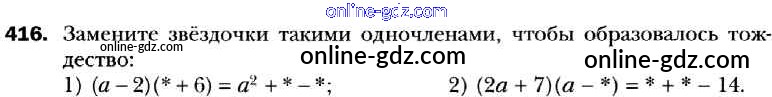 Готовые домашние задания по Алгебре за 7 класс Учебник Мерзляк, Полонский Алгоритм успеха Базовый уровень 2016 - Упражнения 416