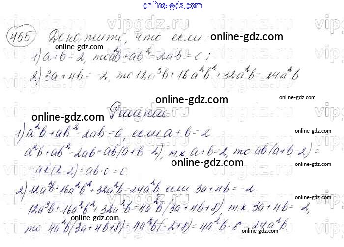 Готовые домашние задания по Алгебре за 7 класс Учебник Мерзляк, Полонский Алгоритм успеха Базовый уровень 2016 - Упражнения 455