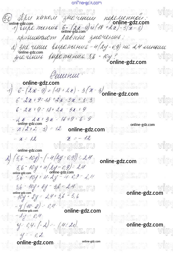 Готовые домашние задания по Алгебре за 7 класс Учебник Мерзляк, Полонский Алгоритм успеха Базовый уровень 2016 - Упражнения 50