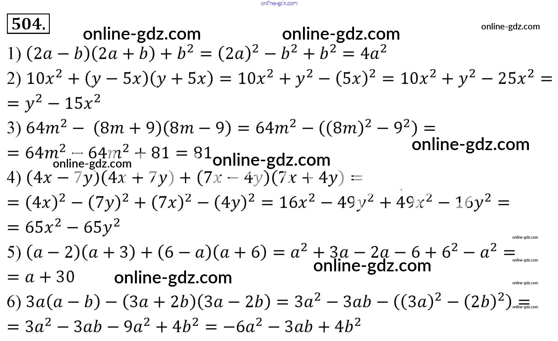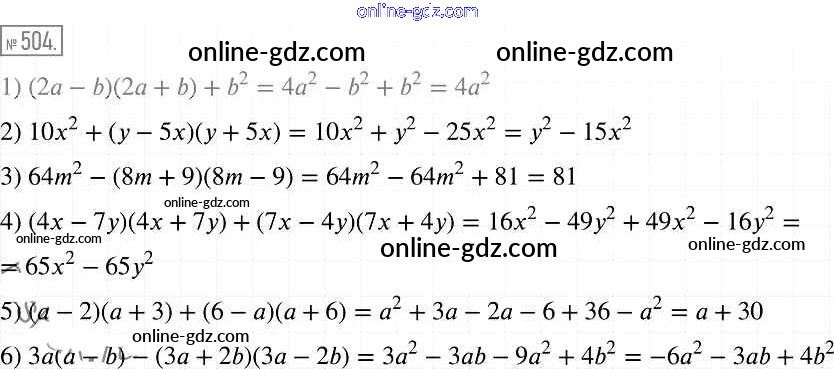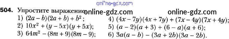 Готовые домашние задания по Алгебре за 7 класс Учебник Мерзляк, Полонский Алгоритм успеха Базовый уровень 2016 - Упражнения 504