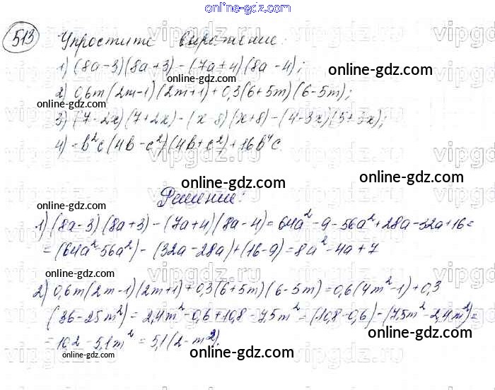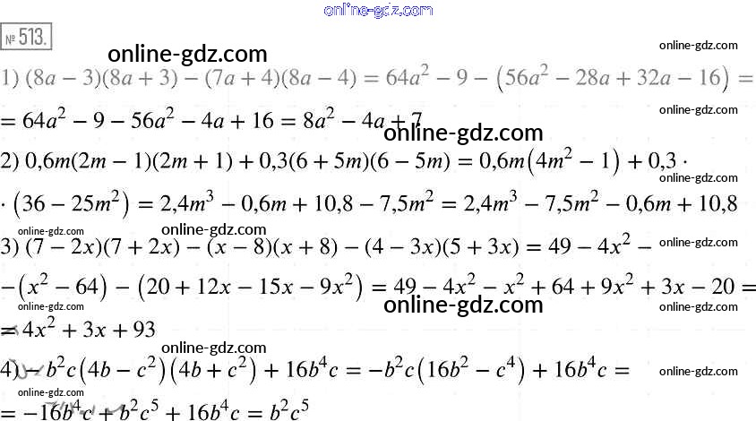 Готовые домашние задания по Алгебре за 7 класс Учебник Мерзляк, Полонский Алгоритм успеха Базовый уровень 2016 - Упражнения 513