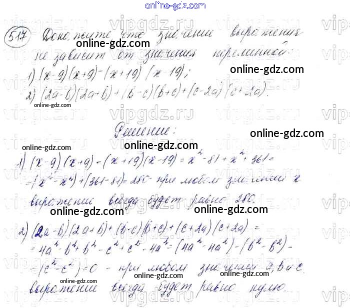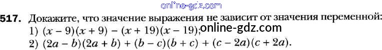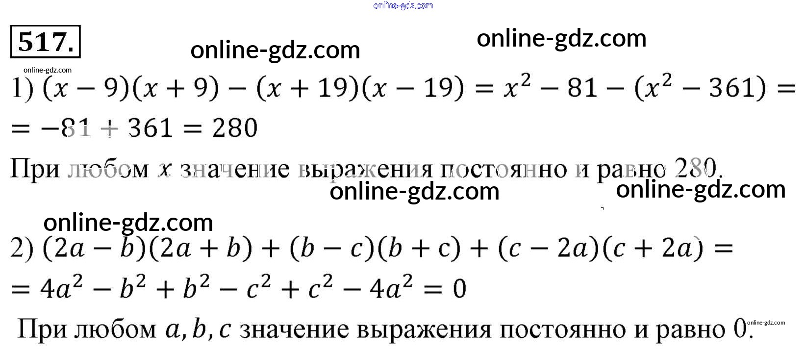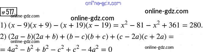 Готовые домашние задания по Алгебре за 7 класс Учебник Мерзляк, Полонский Алгоритм успеха Базовый уровень 2016 - Упражнения 517