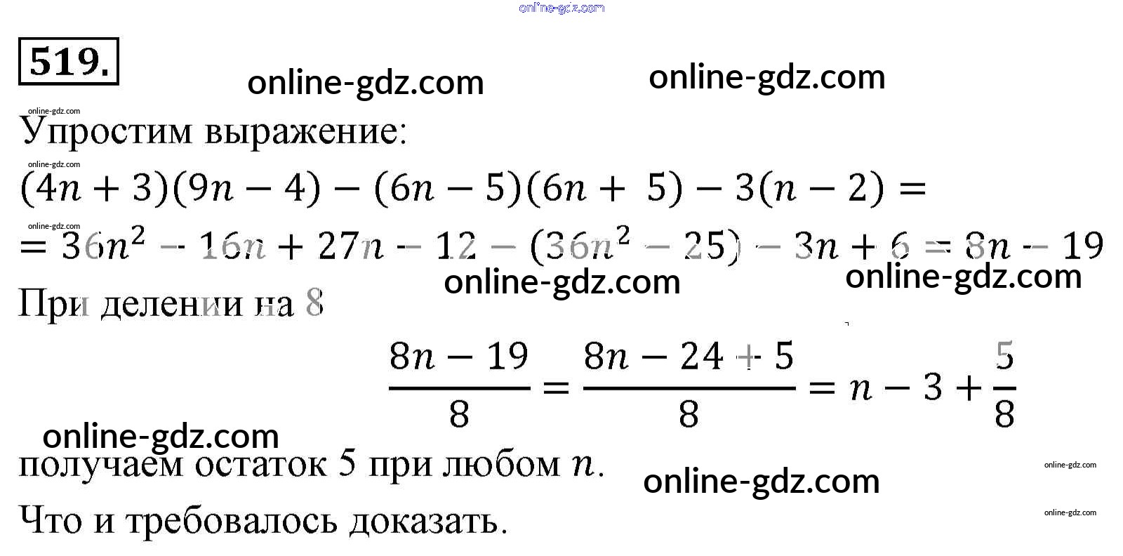 Готовые домашние задания по Алгебре за 7 класс Учебник Мерзляк, Полонский Алгоритм успеха Базовый уровень 2016 - Упражнения 519