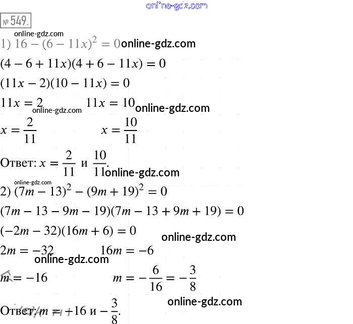 Готовые домашние задания по Алгебре за 7 класс Учебник Мерзляк, Полонский Алгоритм успеха Базовый уровень 2016 - Упражнения 549