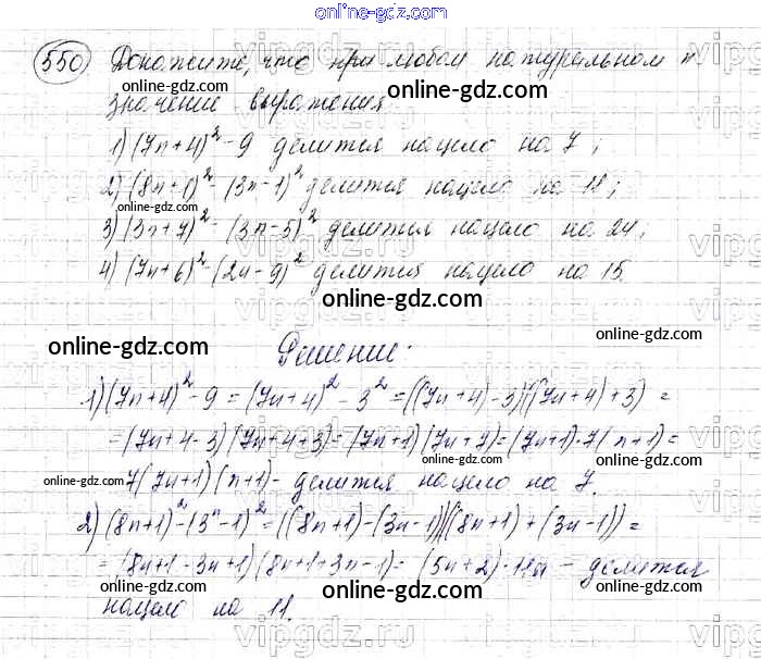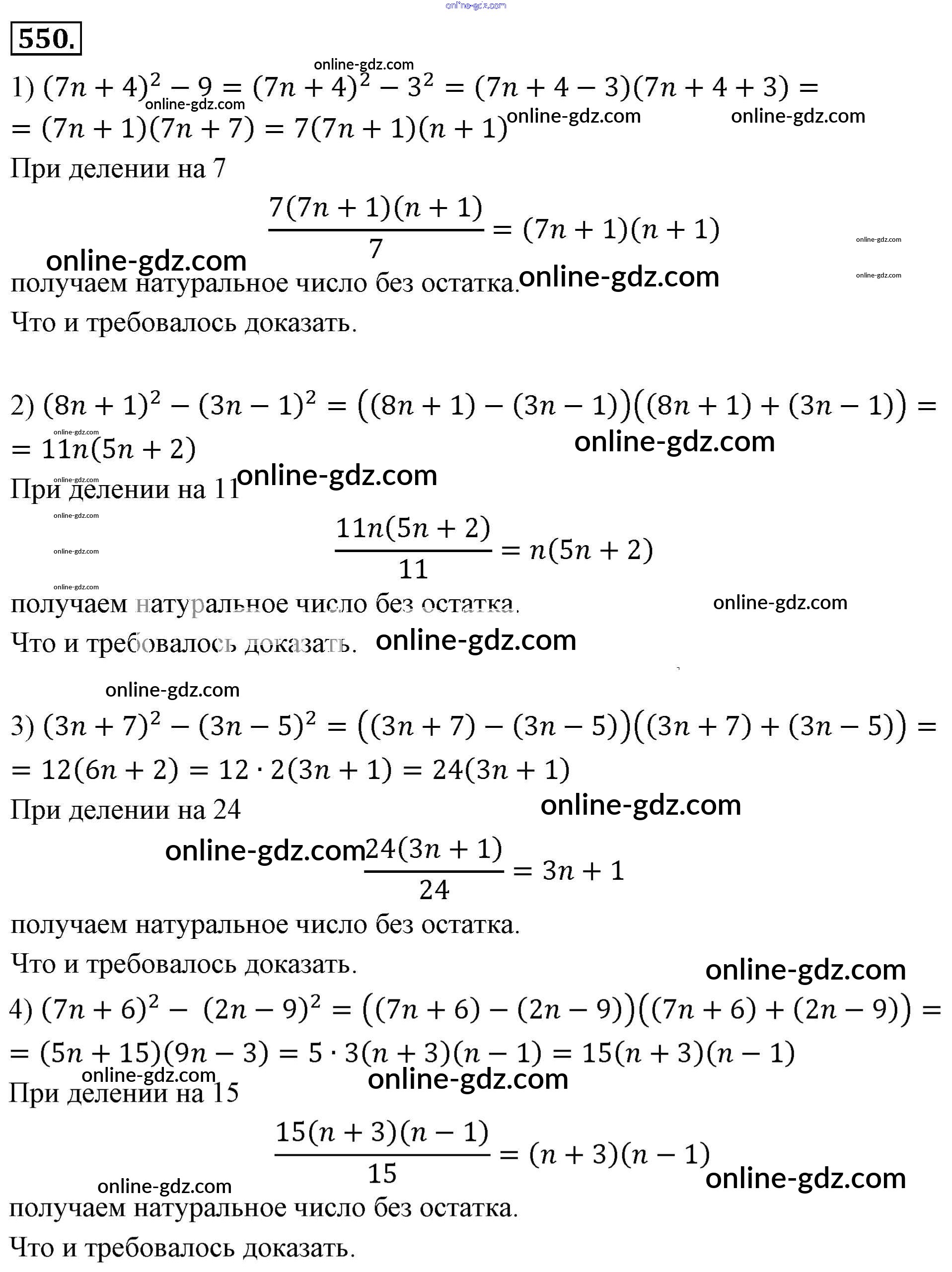 Готовые домашние задания по Алгебре за 7 класс Учебник Мерзляк, Полонский Алгоритм успеха Базовый уровень 2016 - Упражнения 550