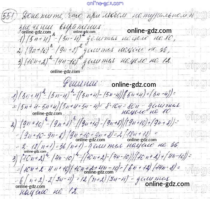 Готовые домашние задания по Алгебре за 7 класс Учебник Мерзляк, Полонский Алгоритм успеха Базовый уровень 2016 - Упражнения 551