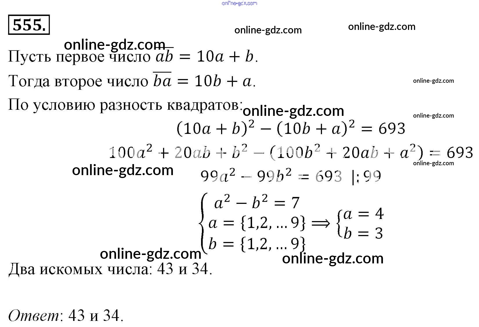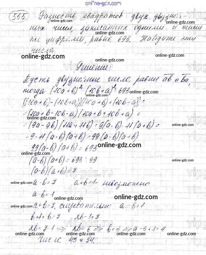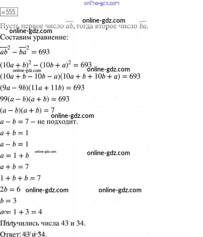 Готовые домашние задания по Алгебре за 7 класс Учебник Мерзляк, Полонский Алгоритм успеха Базовый уровень 2016 - Упражнения 555