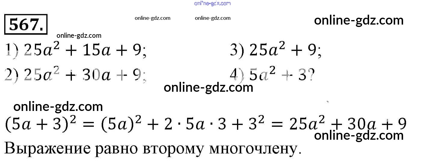 Готовые домашние задания по Алгебре за 7 класс Учебник Мерзляк, Полонский Алгоритм успеха Базовый уровень 2016 - Упражнения 567