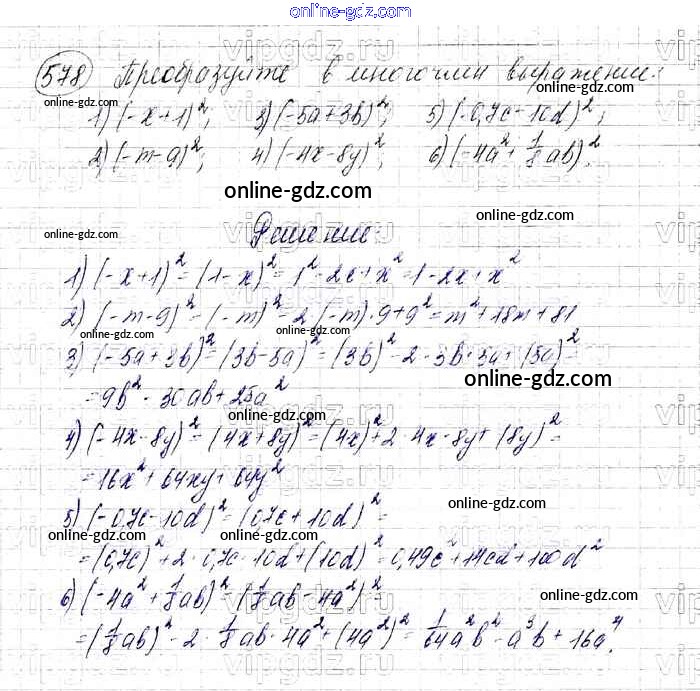 Готовые домашние задания по Алгебре за 7 класс Учебник Мерзляк, Полонский Алгоритм успеха Базовый уровень 2016 - Упражнения 578