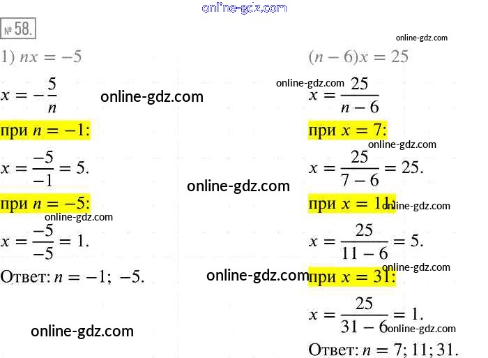Готовые домашние задания по Алгебре за 7 класс Учебник Мерзляк, Полонский Алгоритм успеха Базовый уровень 2016 - Упражнения 58
