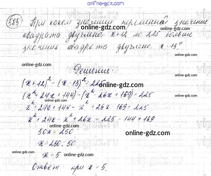 Готовые домашние задания по Алгебре за 7 класс Учебник Мерзляк, Полонский Алгоритм успеха Базовый уровень 2016 - Упражнения 585