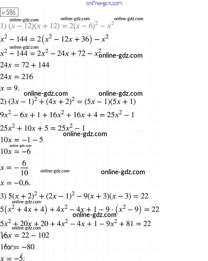 Готовые домашние задания по Алгебре за 7 класс Учебник Мерзляк, Полонский Алгоритм успеха Базовый уровень 2016 - Упражнения 586