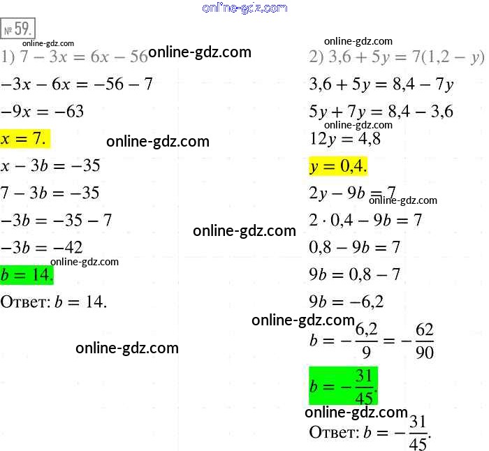 Готовые домашние задания по Алгебре за 7 класс Учебник Мерзляк, Полонский Алгоритм успеха Базовый уровень 2016 - Упражнения 59