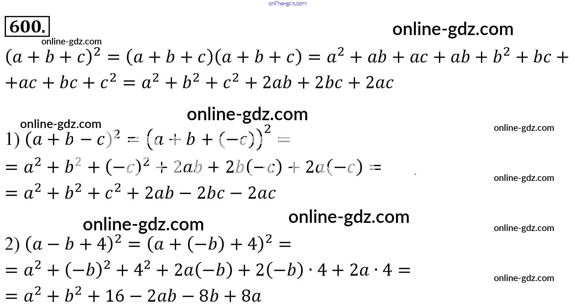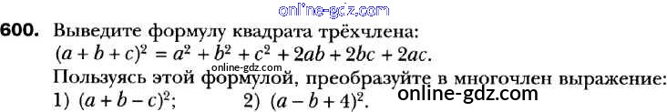 Готовые домашние задания по Алгебре за 7 класс Учебник Мерзляк, Полонский Алгоритм успеха Базовый уровень 2016 - Упражнения 600