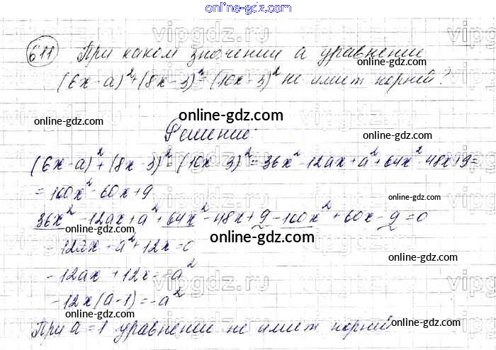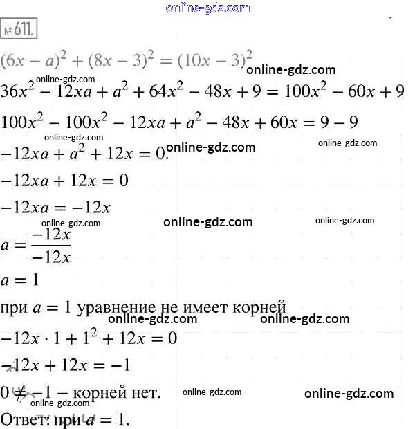 Готовые домашние задания по Алгебре за 7 класс Учебник Мерзляк, Полонский Алгоритм успеха Базовый уровень 2016 - Упражнения 611