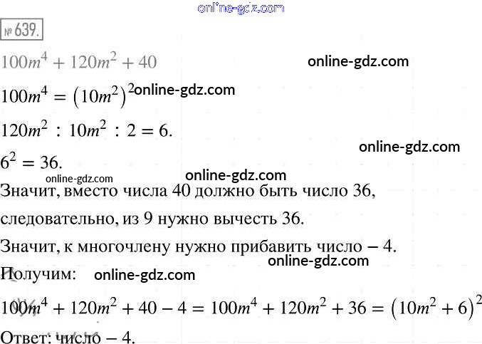 Готовые домашние задания по Алгебре за 7 класс Учебник Мерзляк, Полонский Алгоритм успеха Базовый уровень 2016 - Упражнения 639