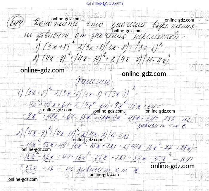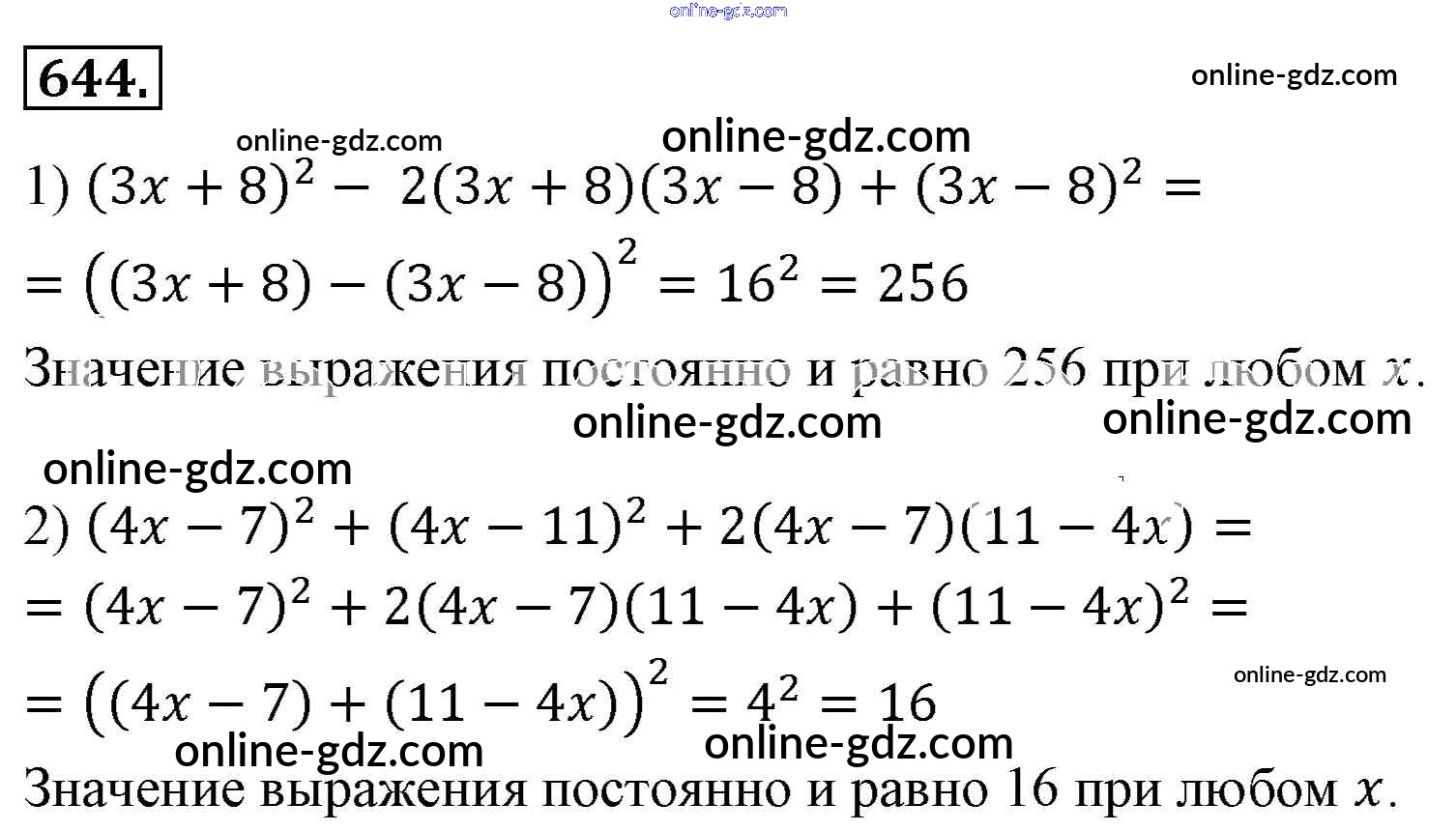 Готовые домашние задания по Алгебре за 7 класс Учебник Мерзляк, Полонский Алгоритм успеха Базовый уровень 2016 - Упражнения 644