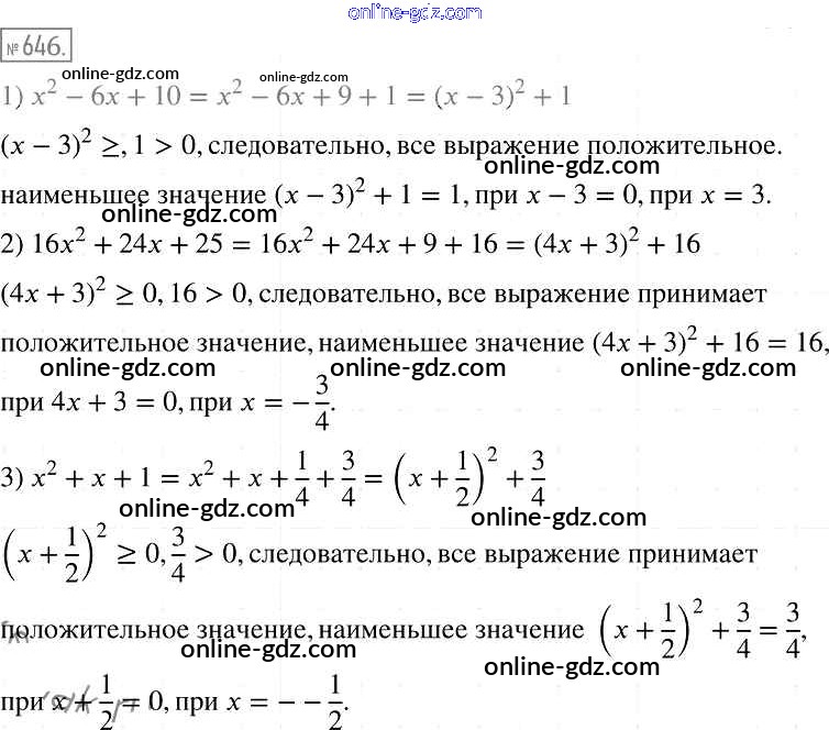 Готовые домашние задания по Алгебре за 7 класс Учебник Мерзляк, Полонский Алгоритм успеха Базовый уровень 2016 - Упражнения 646