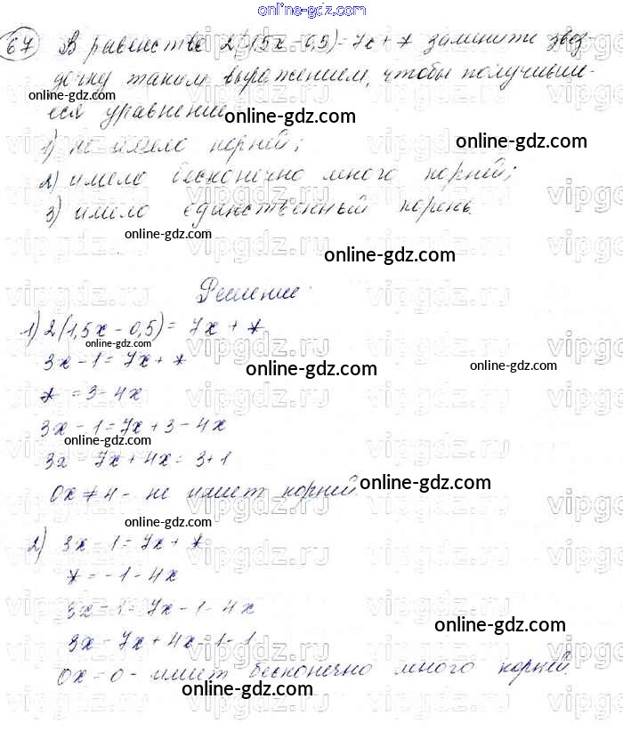 Готовые домашние задания по Алгебре за 7 класс Учебник Мерзляк, Полонский Алгоритм успеха Базовый уровень 2016 - Упражнения 67