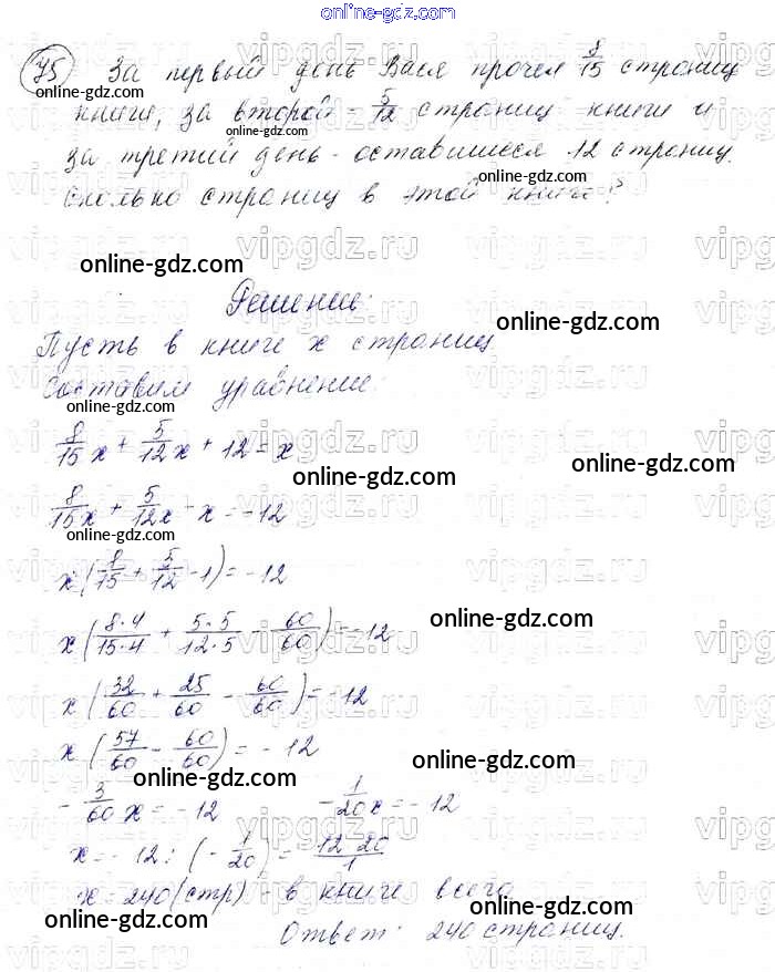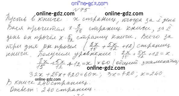 Готовые домашние задания по Алгебре за 7 класс Учебник Мерзляк, Полонский Алгоритм успеха Базовый уровень 2016 - Упражнения 75