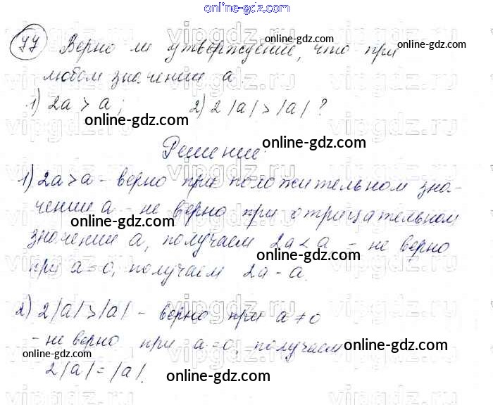 Готовые домашние задания по Алгебре за 7 класс Учебник Мерзляк, Полонский Алгоритм успеха Базовый уровень 2016 - Упражнения 77