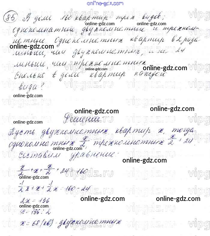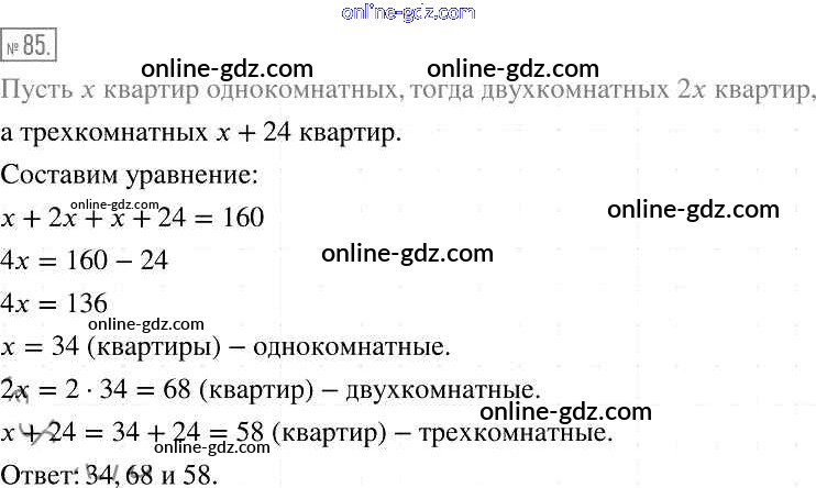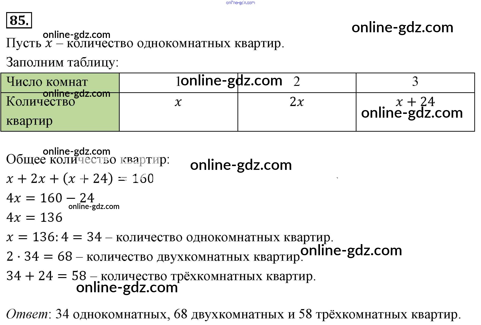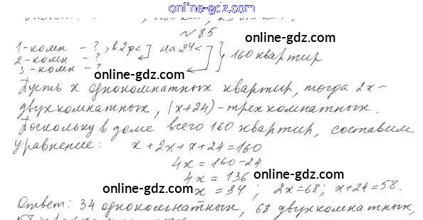 Готовые домашние задания по Алгебре за 7 класс Учебник Мерзляк, Полонский Алгоритм успеха Базовый уровень 2016 - Упражнения 85