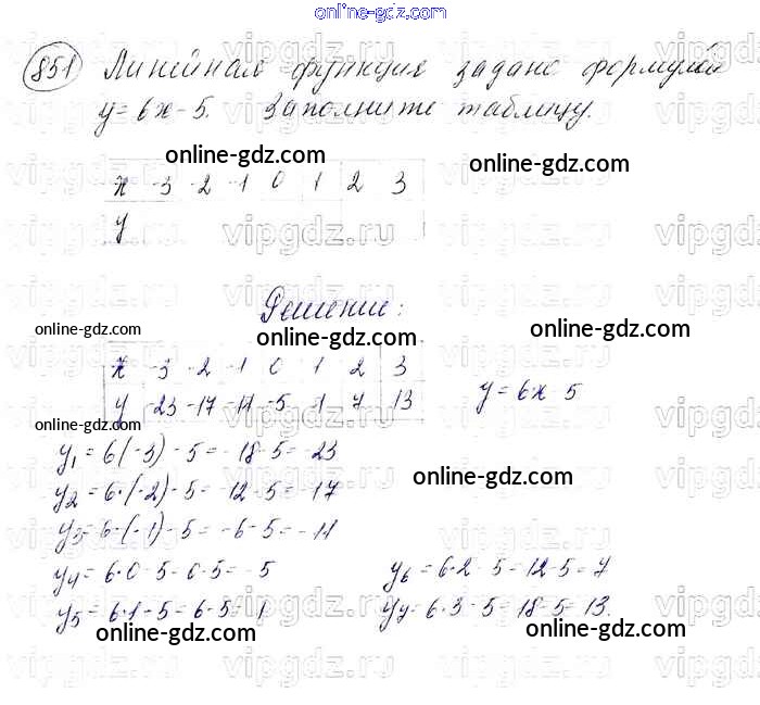 Готовые домашние задания по Алгебре за 7 класс Учебник Мерзляк, Полонский Алгоритм успеха Базовый уровень 2016 - Упражнения 851