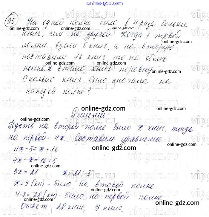 Готовые домашние задания по Алгебре за 7 класс Учебник Мерзляк, Полонский Алгоритм успеха Базовый уровень 2016 - Упражнения 95