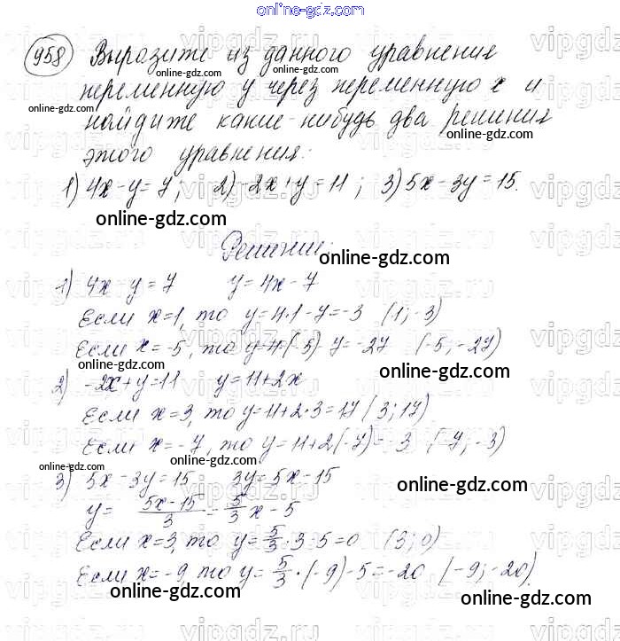 Готовые домашние задания по Алгебре за 7 класс Учебник Мерзляк, Полонский Алгоритм успеха Базовый уровень 2016 - Упражнения 958
