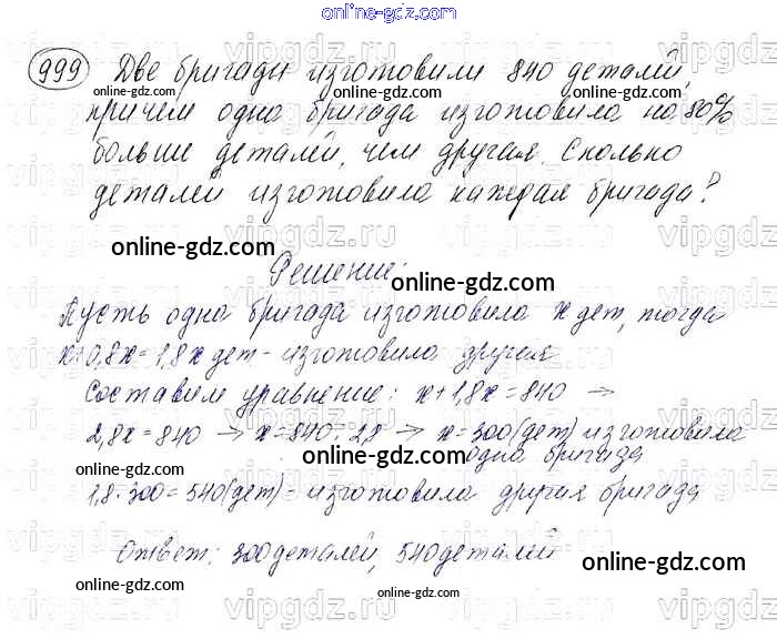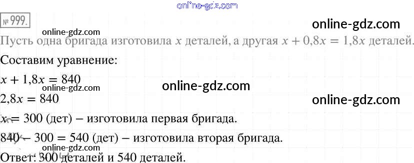 Готовые домашние задания по Алгебре за 7 класс Учебник Мерзляк, Полонский Алгоритм успеха Базовый уровень 2016 - Упражнения 999
