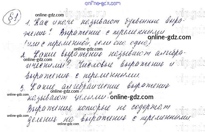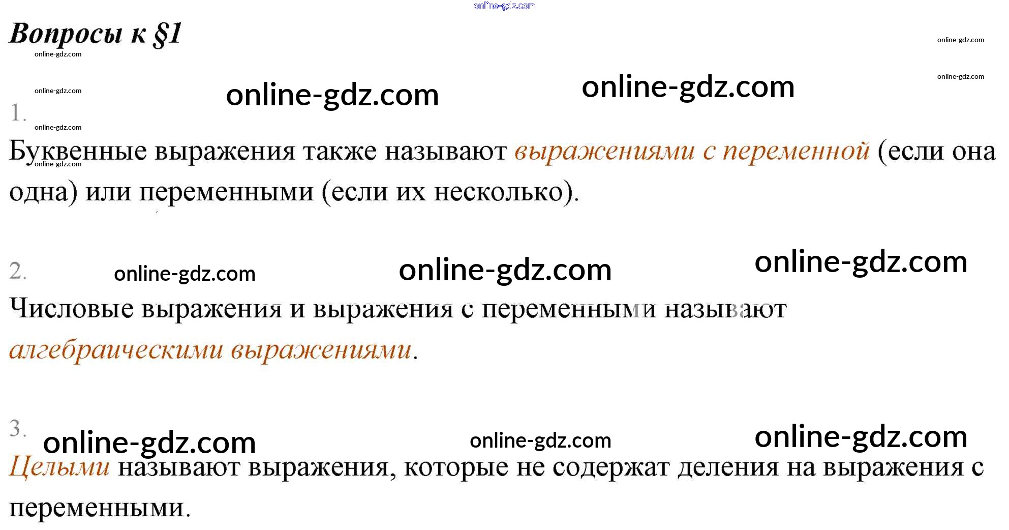 Готовые домашние задания по Алгебре за 7 класс Учебник Мерзляк, Полонский Алгоритм успеха Базовый уровень 2016 - Вопросы к параграфам 1