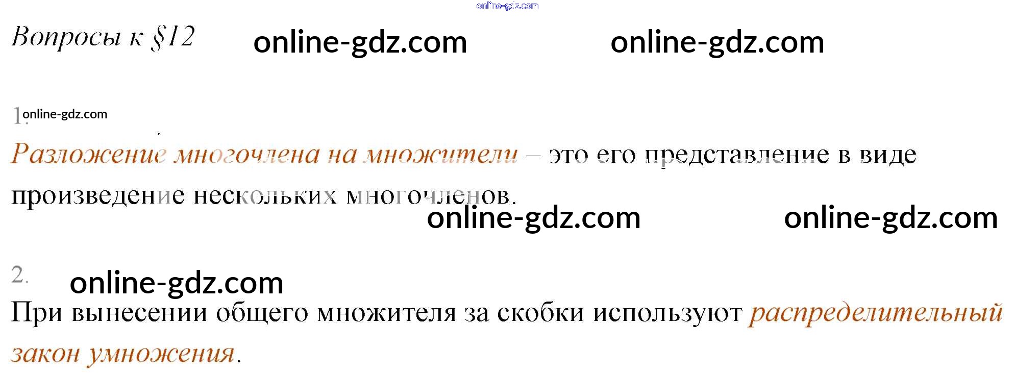 Готовые домашние задания по Алгебре за 7 класс Учебник Мерзляк, Полонский Алгоритм успеха Базовый уровень 2016 - Вопросы к параграфам 12