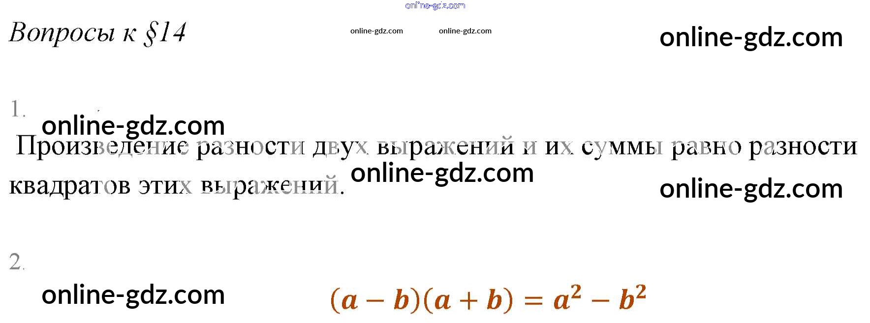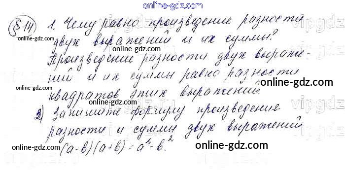 Готовые домашние задания по Алгебре за 7 класс Учебник Мерзляк, Полонский Алгоритм успеха Базовый уровень 2016 - Вопросы к параграфам 14