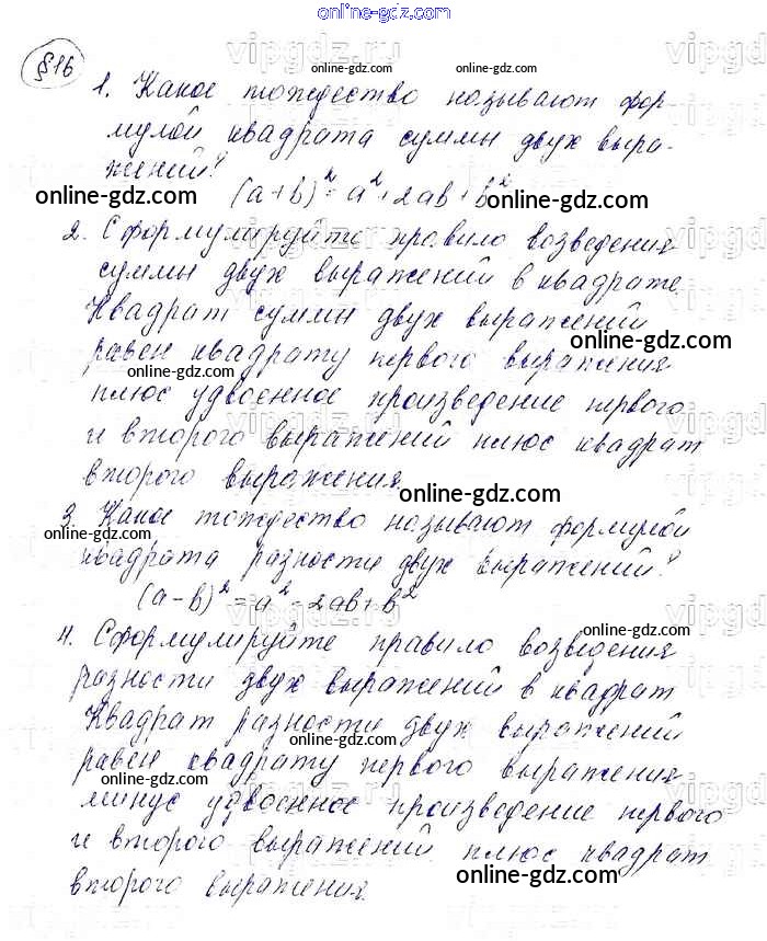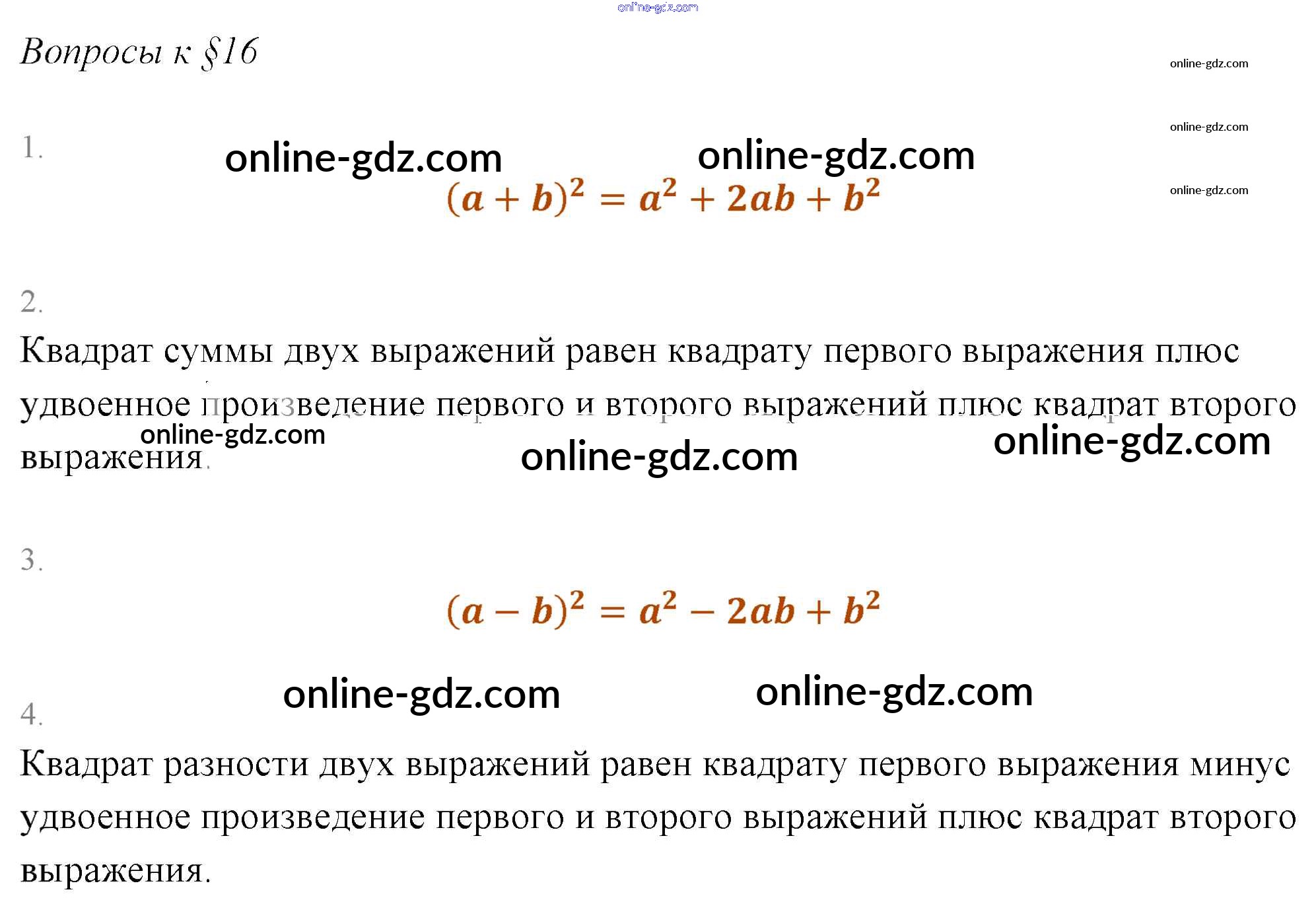 Готовые домашние задания по Алгебре за 7 класс Учебник Мерзляк, Полонский Алгоритм успеха Базовый уровень 2016 - Вопросы к параграфам 16