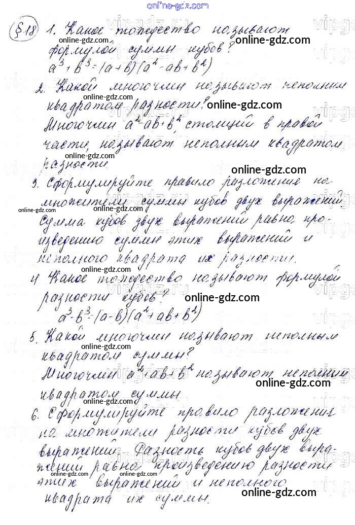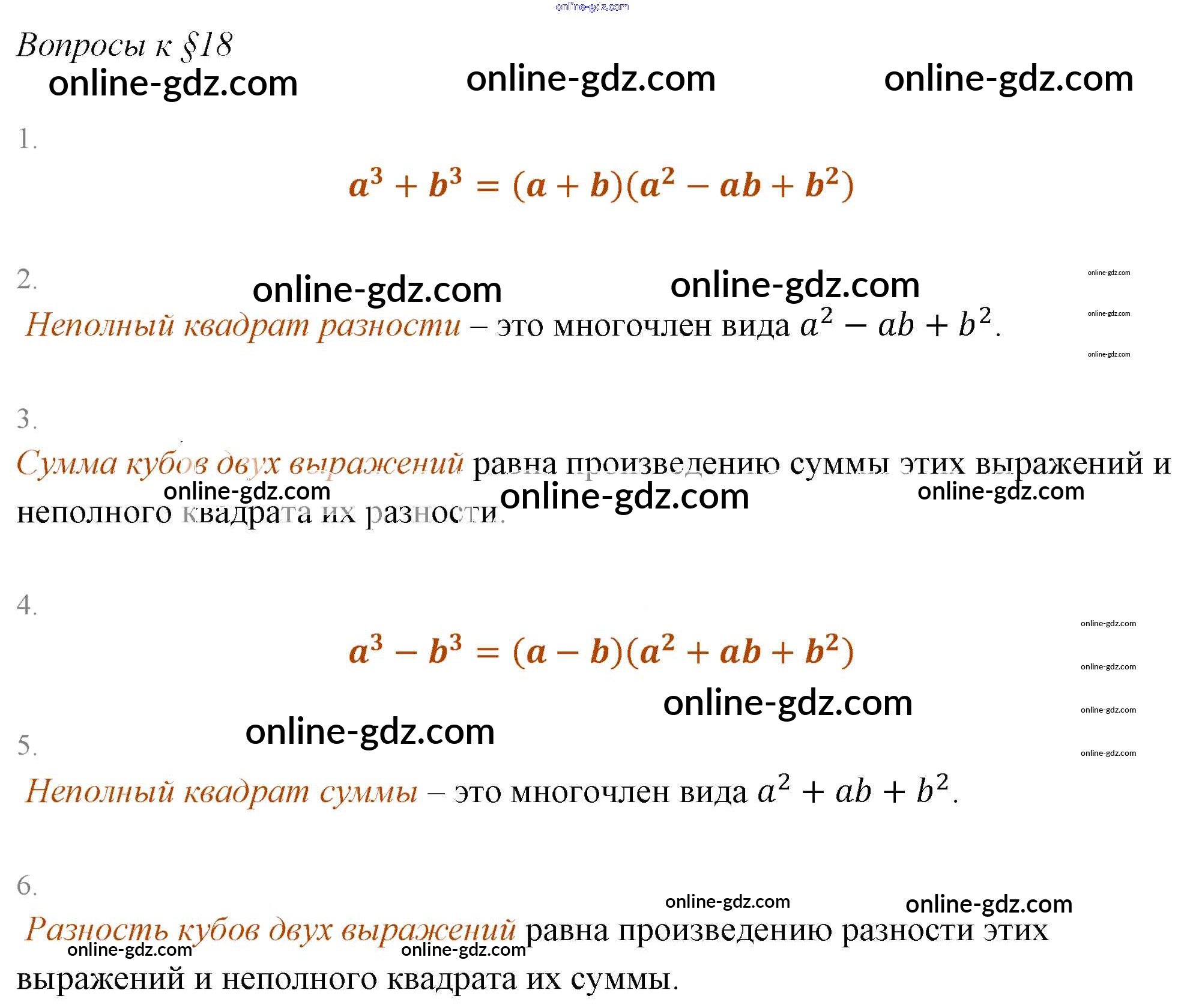 Готовые домашние задания по Алгебре за 7 класс Учебник Мерзляк, Полонский Алгоритм успеха Базовый уровень 2016 - Вопросы к параграфам 18