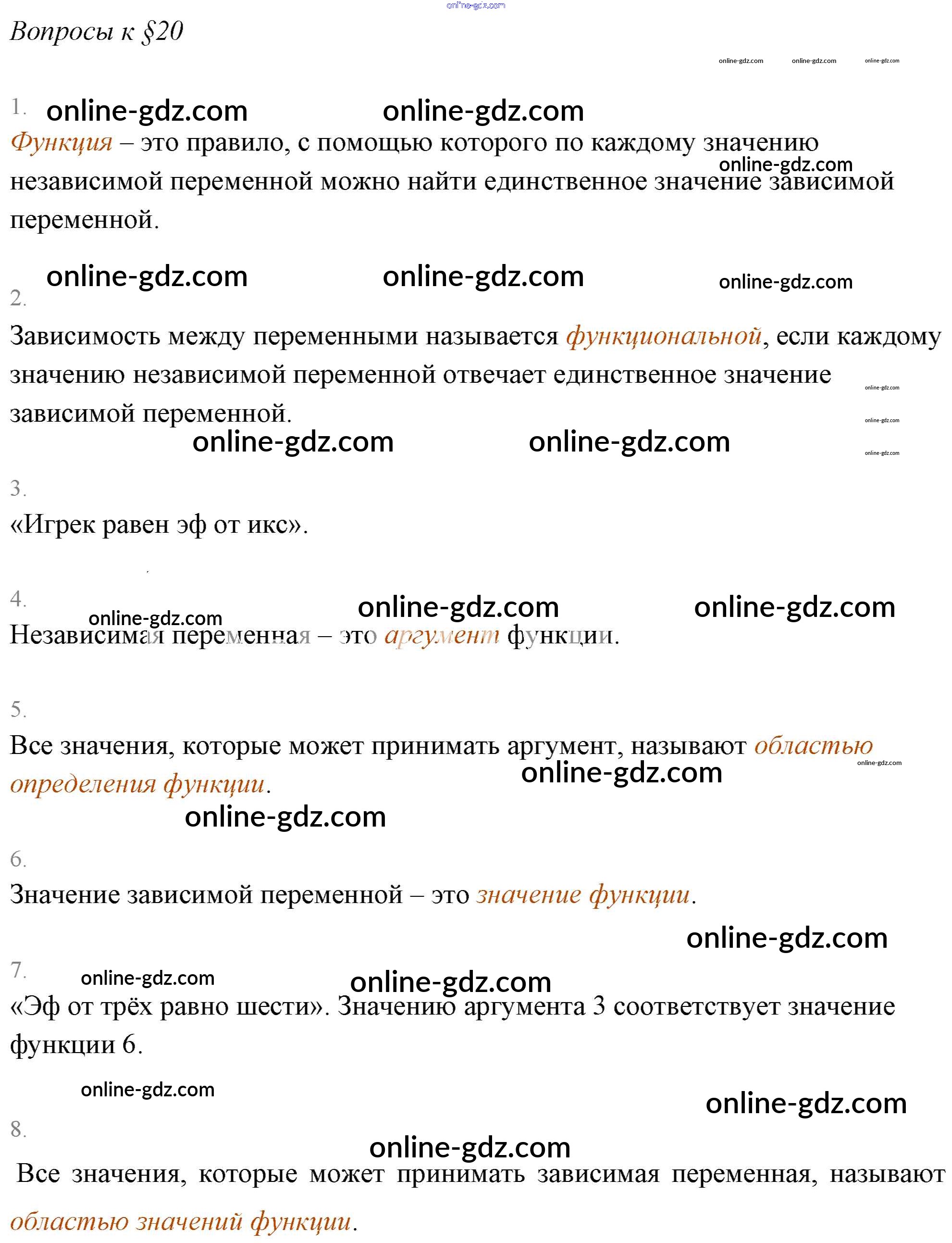 Готовые домашние задания по Алгебре за 7 класс Учебник Мерзляк, Полонский Алгоритм успеха Базовый уровень 2016 - Вопросы к параграфам 20