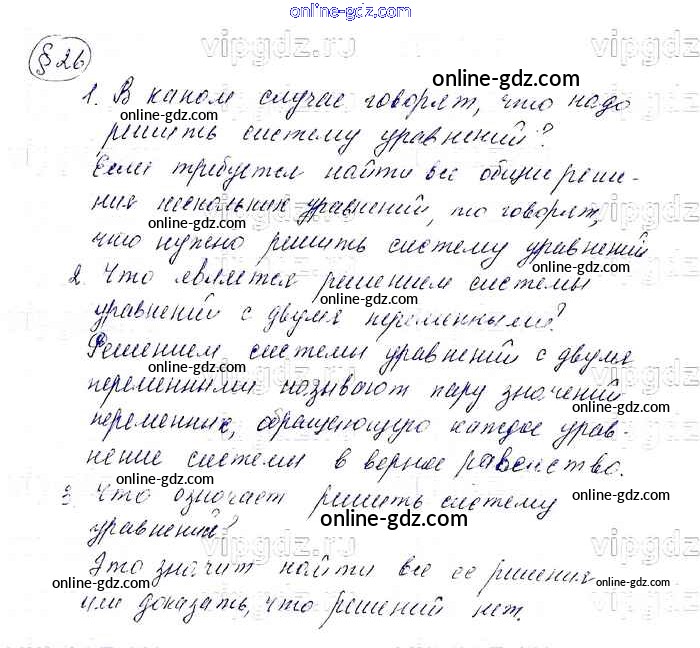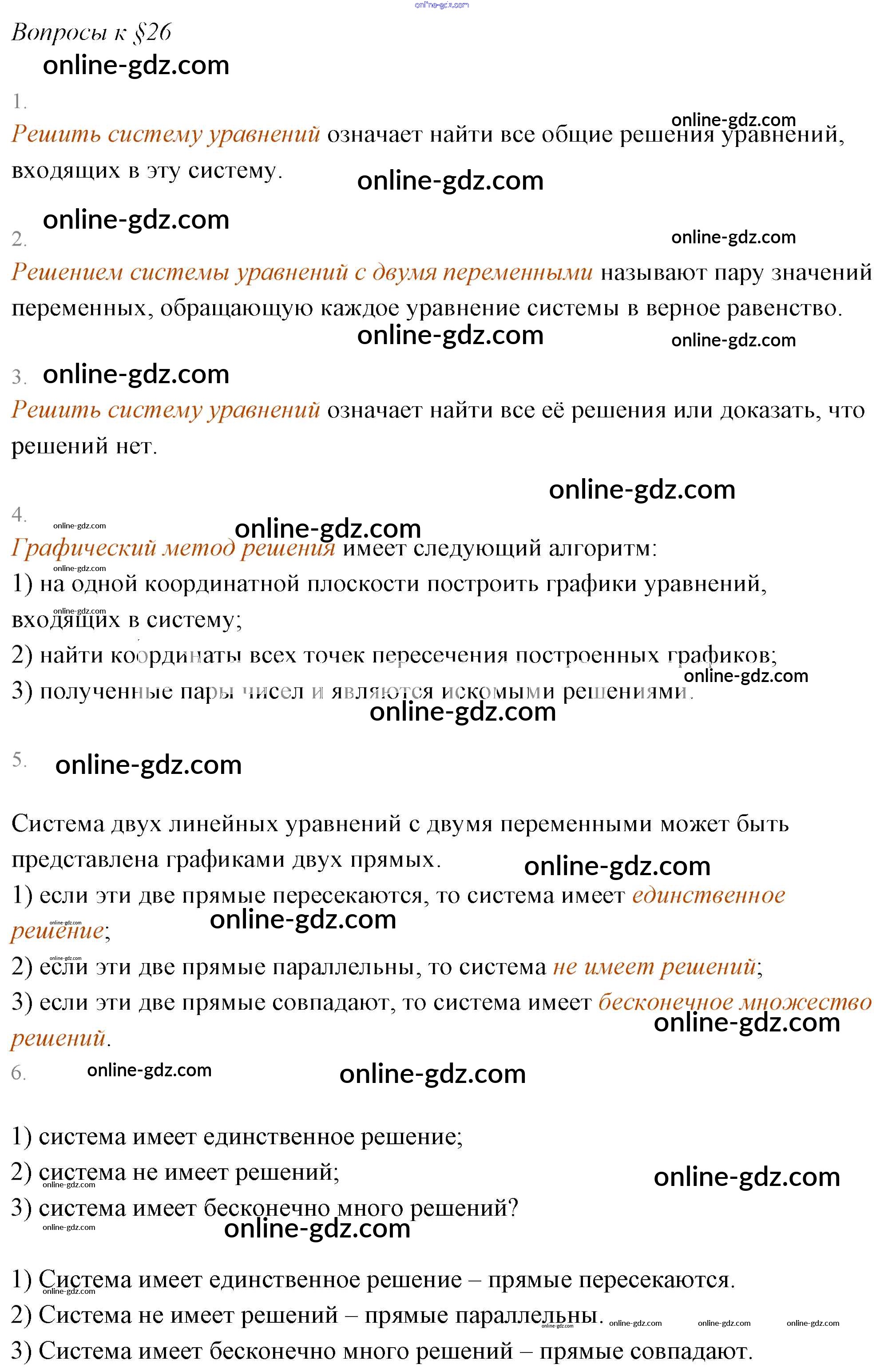 Готовые домашние задания по Алгебре за 7 класс Учебник Мерзляк, Полонский Алгоритм успеха Базовый уровень 2016 - Вопросы к параграфам 26