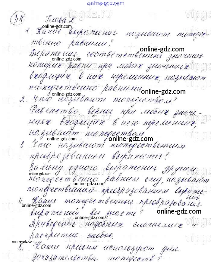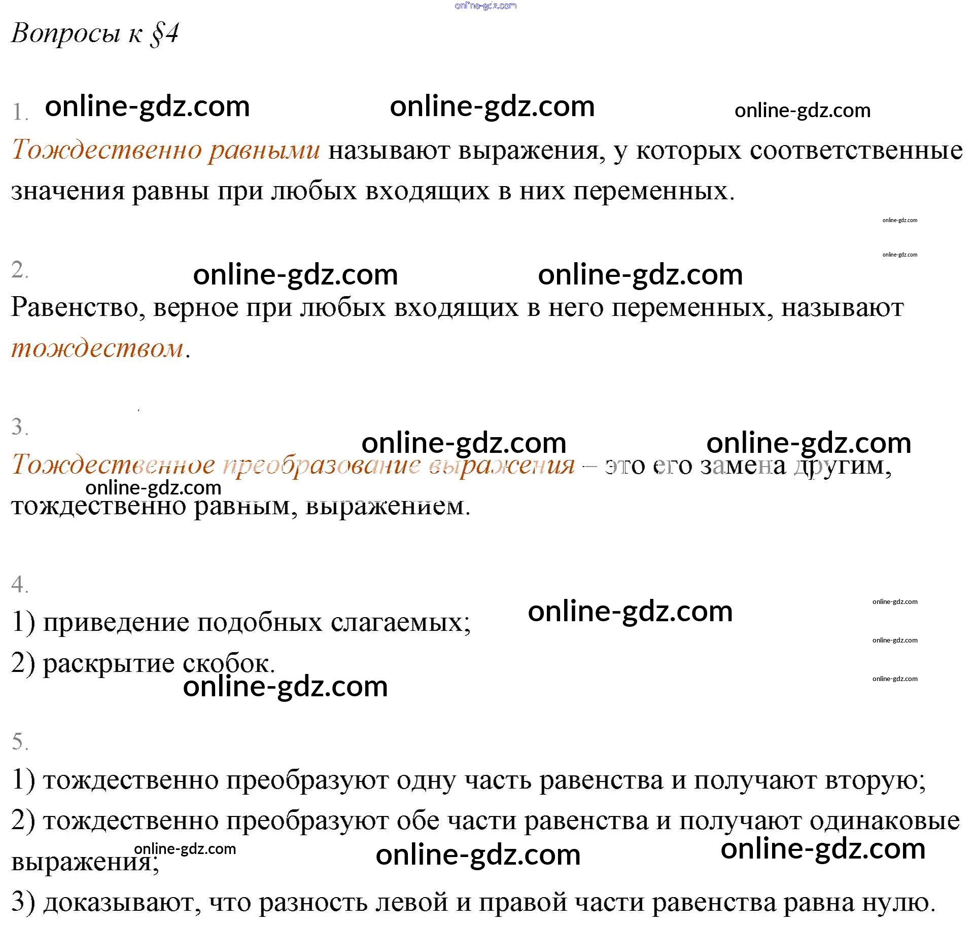 Готовые домашние задания по Алгебре за 7 класс Учебник Мерзляк, Полонский Алгоритм успеха Базовый уровень 2016 - Вопросы к параграфам 4